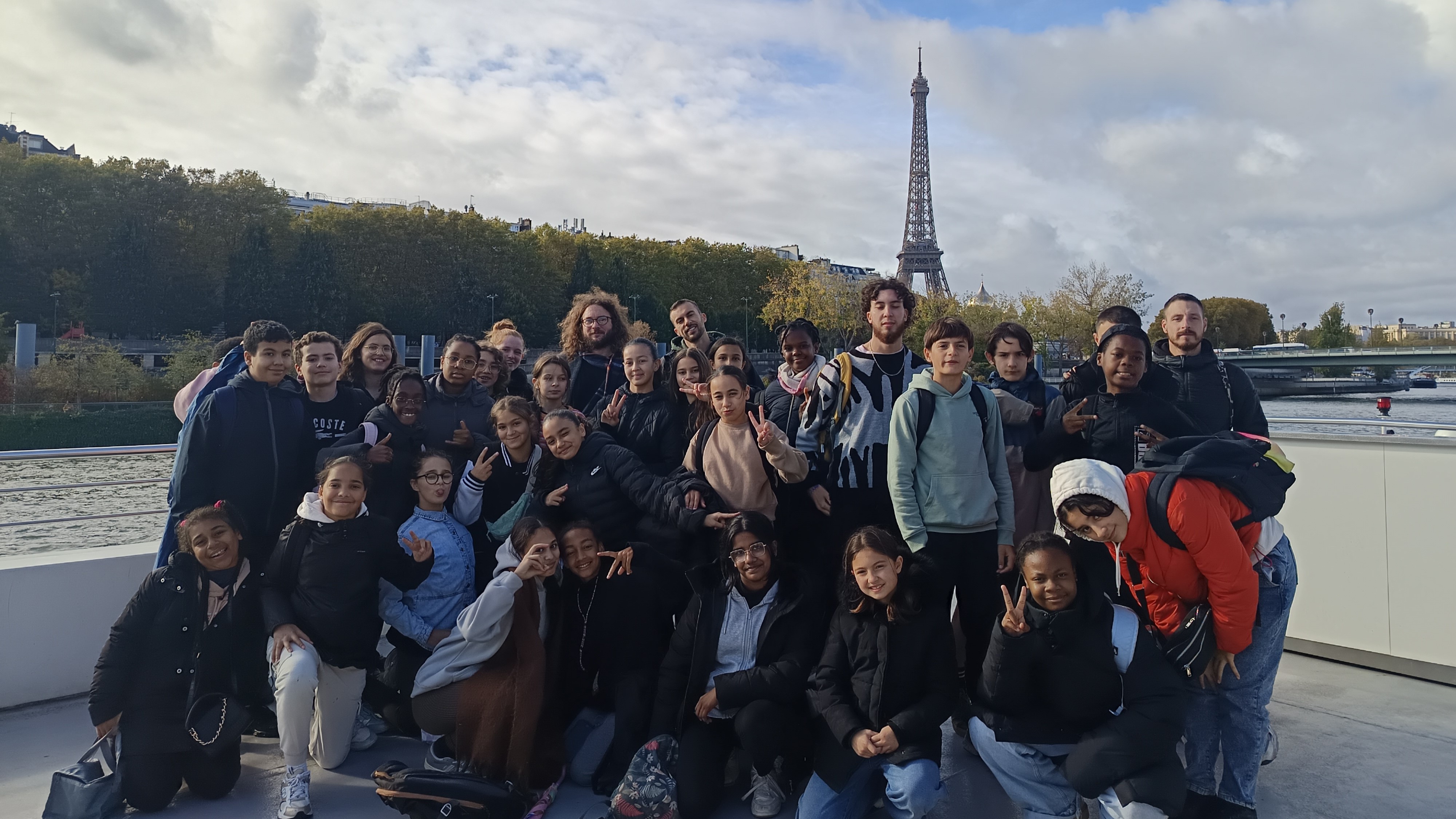 Le 21 octobre 2025, quatre enseignants (M. Hervé, M. Laouedj, M. Bardoux et moi, M. Potschke) et 35 élèves étaient au rendez-vous pour profiter du très beau programme parisien concocté par Mme Devic. Partis du collège peu après 8h30, nous avons emprunté le RER B puis, après un changement à Saint-Michel, le RER C afin de rejoindre la station Pont de l’Alma, puis le pont du même nom.