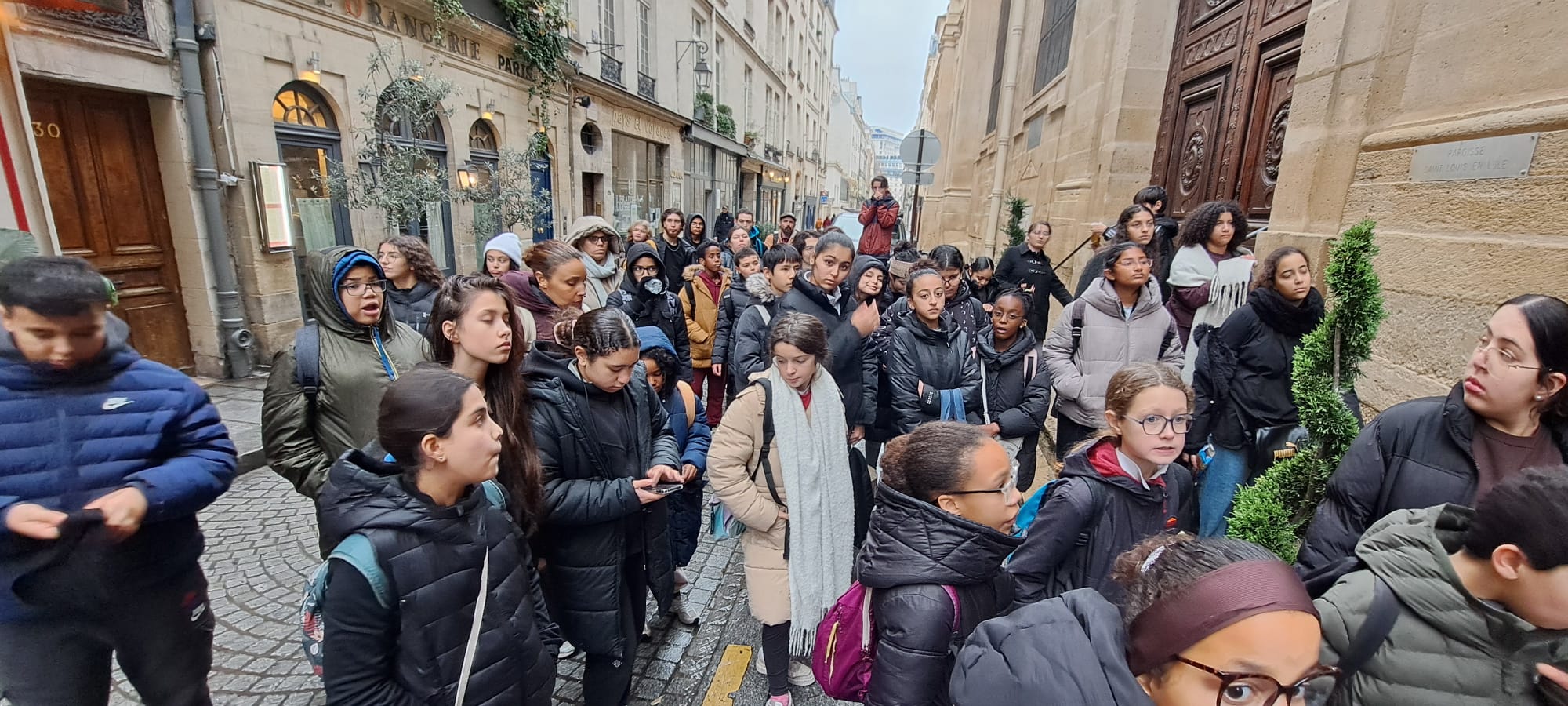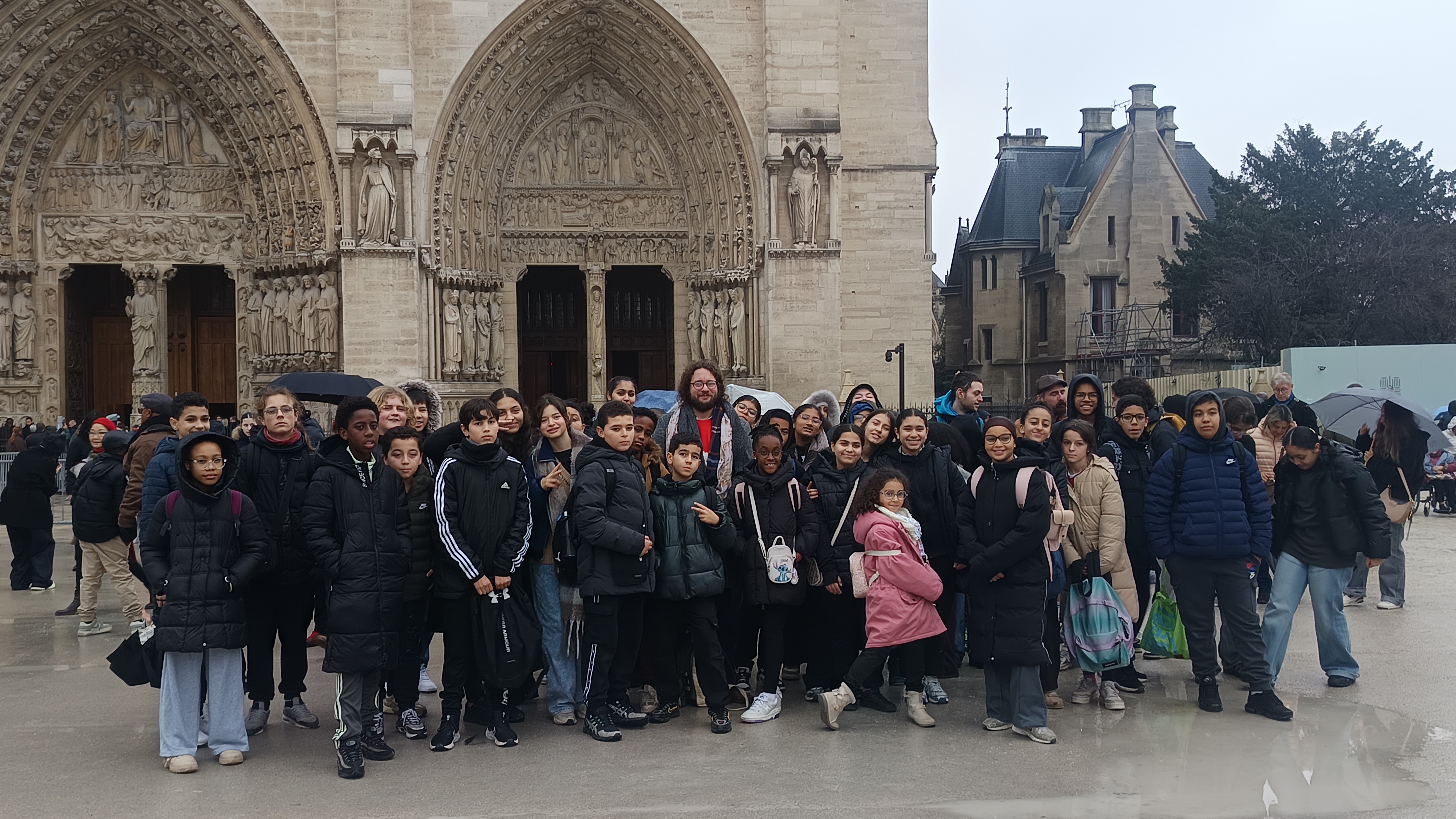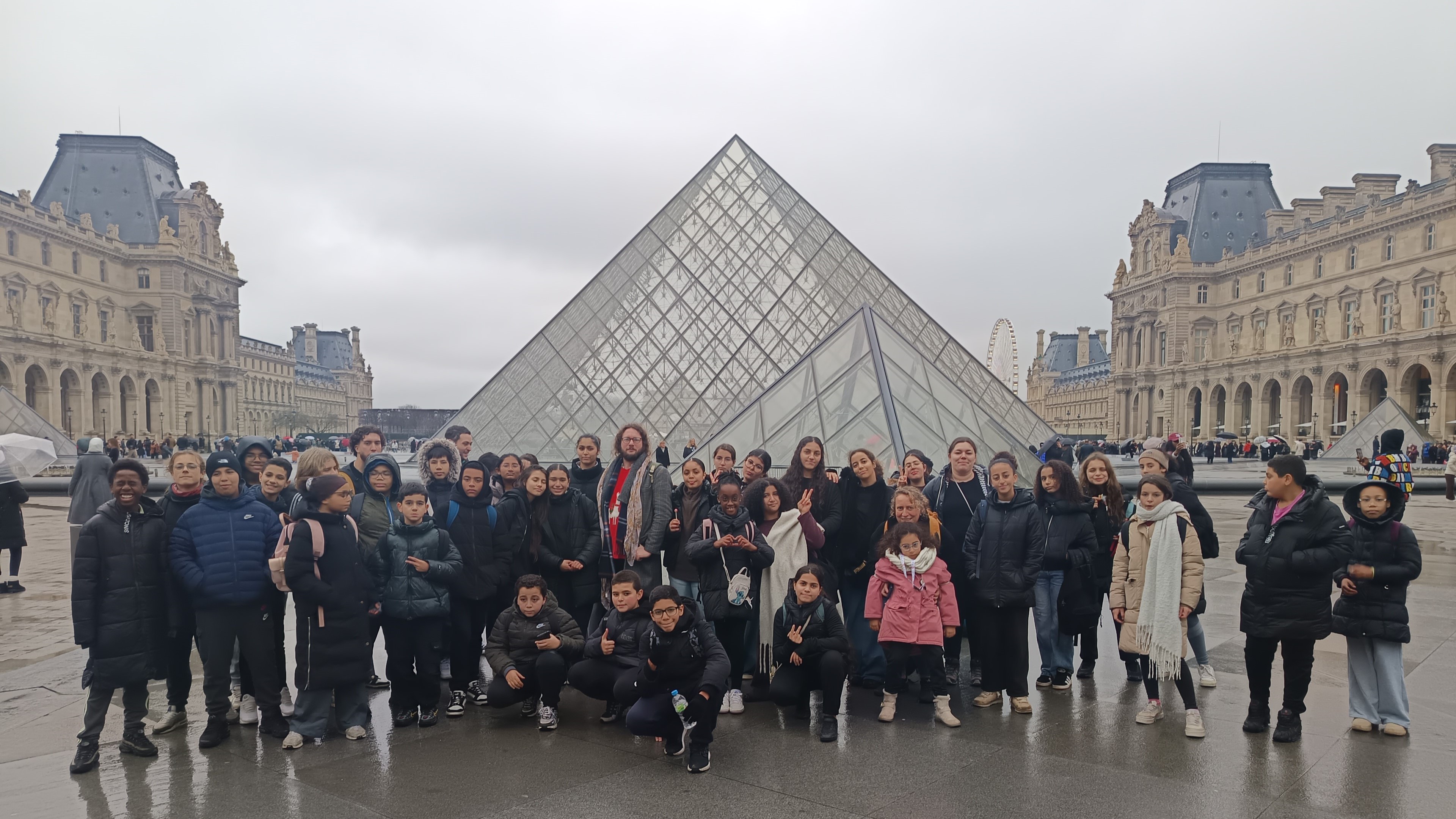 Nous étions 5 enseignants (M. Laouedj, Mme Laffargue, Mme Mercadal, M. Hamitouche et moi-même, M. Potschke, qui organisais la sortie) ainsi que dix parents d’élèves pour accompagner pas moins de 41 élèves à Paris pour la sortie d’hiver sur l’Axe historique parisien.